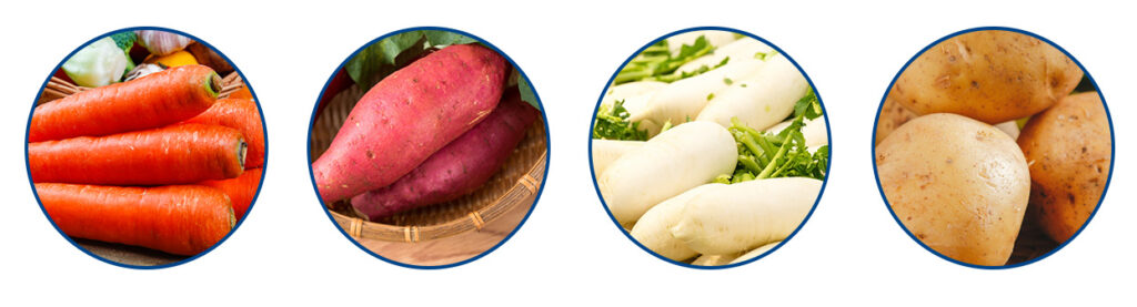 Khoai tây (khoai tây), khoai tây ngọt (khoai tây ngọt), hạt tây, taro, rễ sen, đậu cải trắng, đậu cải đỏ, gừng, đậu hạt nước, khoai tây ngọt, v.v.