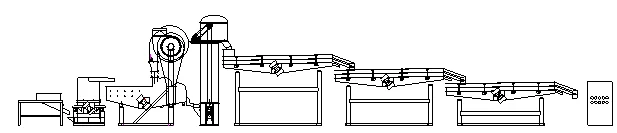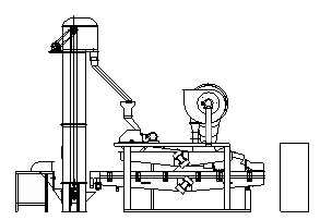 Đơn vị làm sạch và phân loại: phễu cấp liệu, thang xoắn ốc, bộ loại bỏ tạp chất đa năng, thang gầu, sàng phân loại
